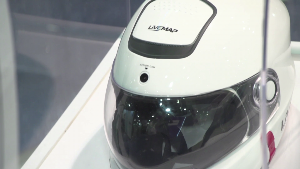 – Prezentujemy kask motocyklowy z prawdziwym wyświetlaczem przeziernym HUD, który przede wszystkim przyczynia się do zapewnienia bezpieczeństwa motocykliście. Szybka kasku ma specjalne właściwości optyczne. Następuje rzutowanie obrazu cyfrowego wyświetlacza na wewnętrzną powierzchnię, a szybka przetwarza fale świetlne w taki sposób, że obraz z nawigacją lub danymi z motocykla widoczny jest w odległości 20 metrów przed motocyklistą, czyli w obszarze, który powinien on monitorować podczas jazdy – tłumaczy Larry Tank z Livemap.