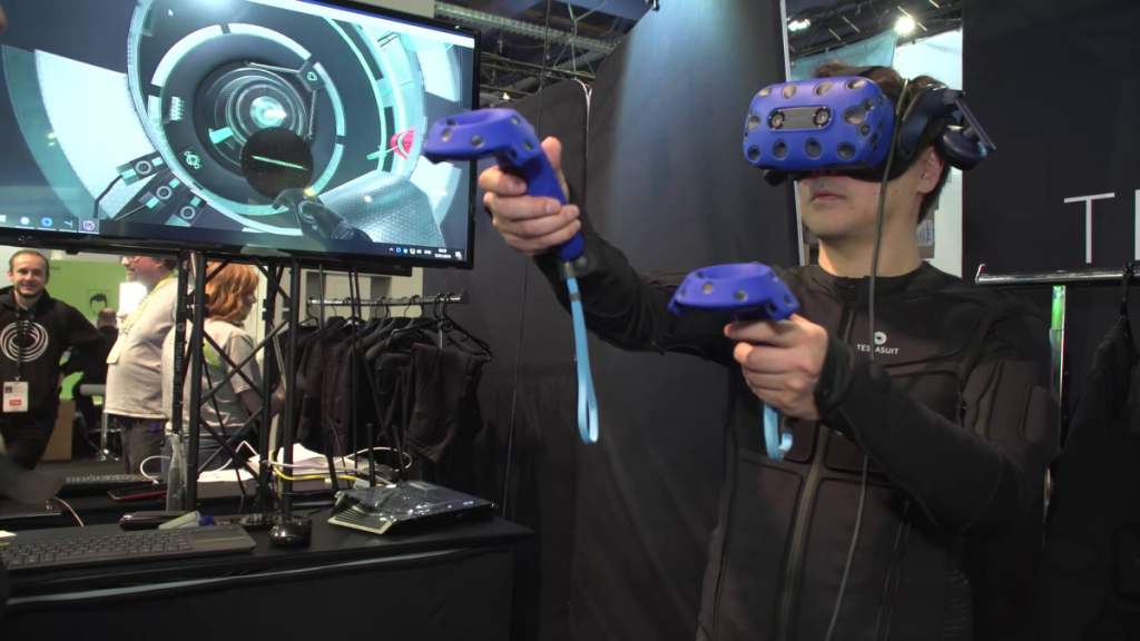 Kombinezon haptyczny Teslasuit zaprojektowano z myślą o graczach, którzy chcieliby wykorzystać większą liczbę zmysłów w trakcie przebywania w wirtualnej rzeczywistości. Urządzenie znalazło jednak zastosowanie również w branży kosmicznej. Jest to jeden z najbardziej zaawansowanych kostiumów VR, który dzięki systemowi czujników biometrycznych monitoruje parametry życiowe użytkownika i potrafi oddziaływać na jego ciało za pomocą silników haptycznych oraz bodźców cieplnych.